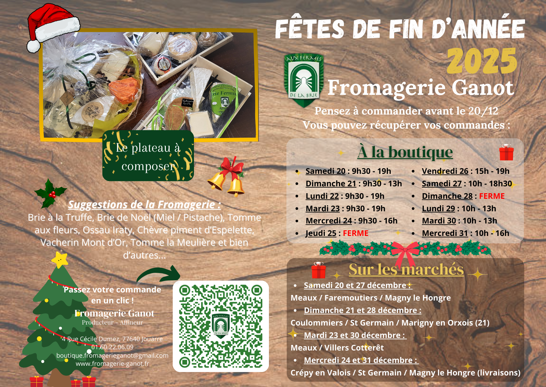 Par email : boutique.fromagerieganot@gmail.com